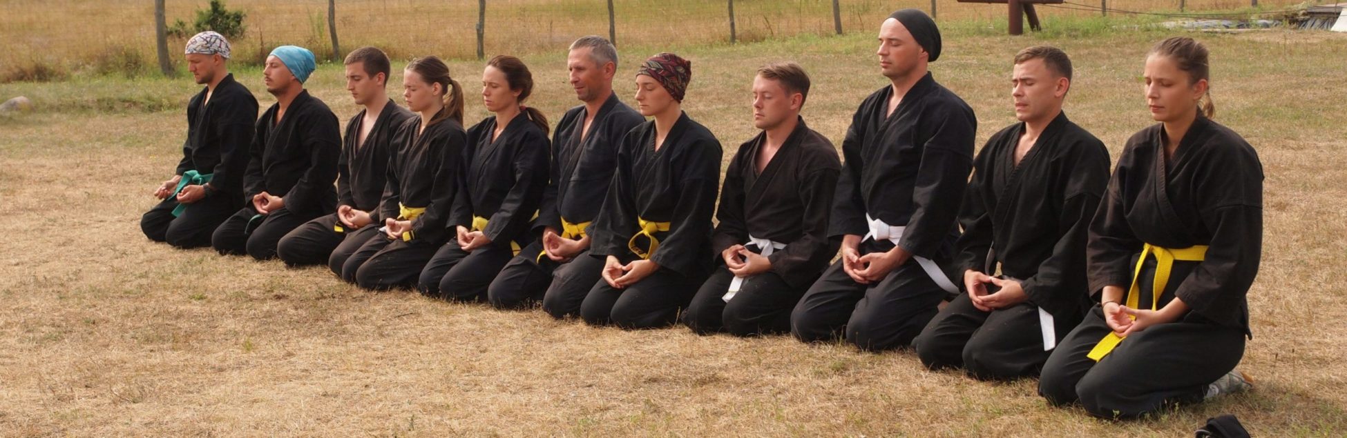 Następną komendą jest „Mokuso-yame”. Po tej komendzie powoli każdy w swoim tempie kończymy medytacje. Po komendzie Kirt-su rozpoczynamy zajęcia.